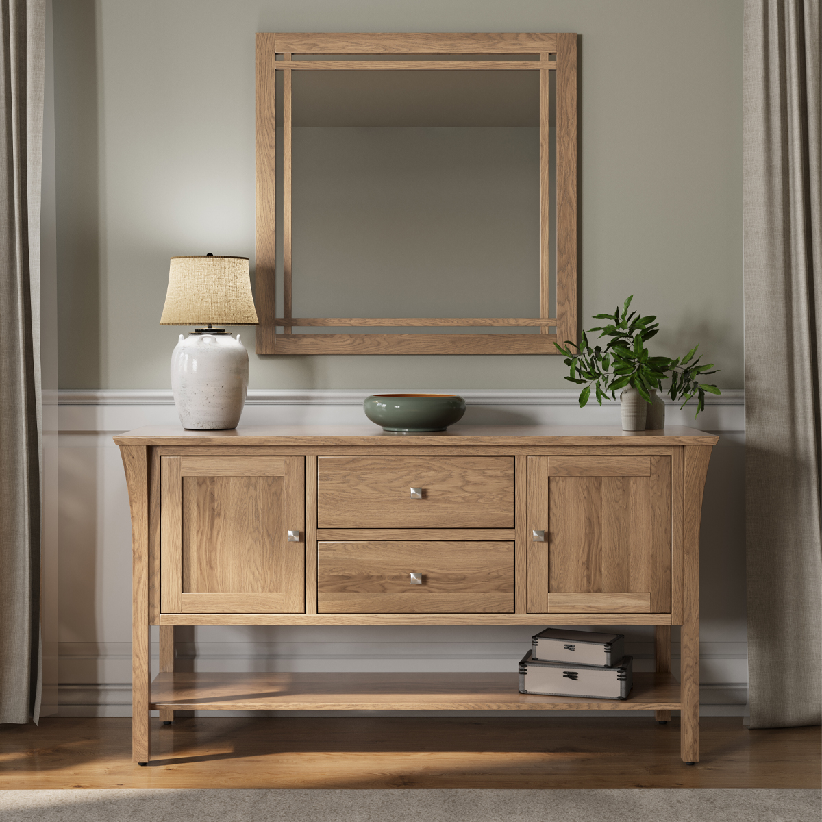 Drawers on all furniture feature smooth gliding, 3/4 extension, soft close drawer slides mounted discreetly on the underside. Case doors are fitted with soft close hinges, ensuring durability, precision and quiet operation.