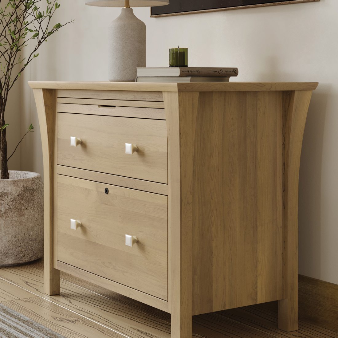 Drawers on all furniture feature smooth gliding, 3/4 extension, soft close drawer slides mounted discreetly on the underside. Case doors are fitted with soft close hinges, ensuring durability, precision and quiet operation.