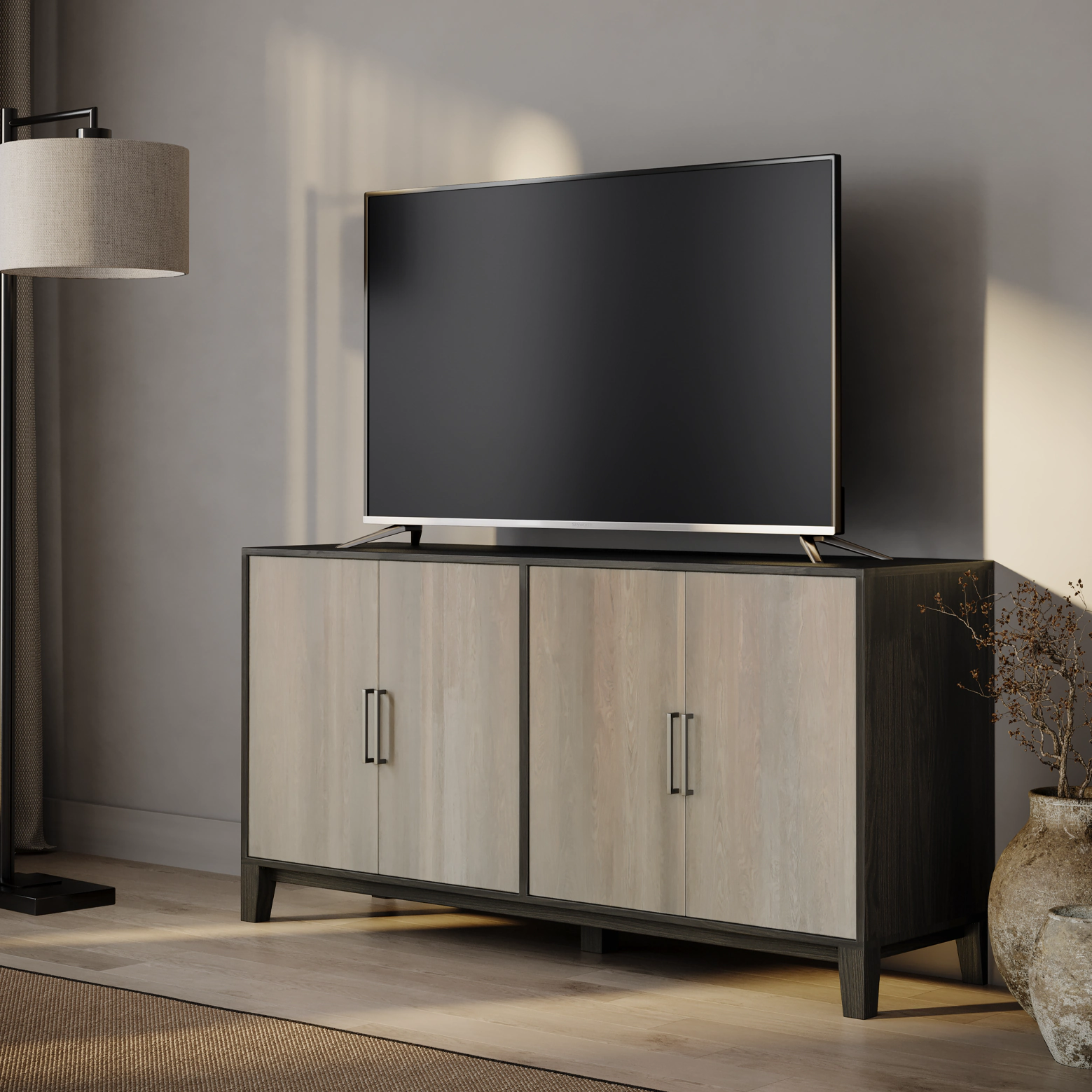 Saybrook Large Home Entertainment Console, HME3150AL, White Oak Wood, 406 Powder Stain Doors, 317 Gravel Stain Frame, Standard Hardware 625-160SN & Omitted Decorative Corner Hardware