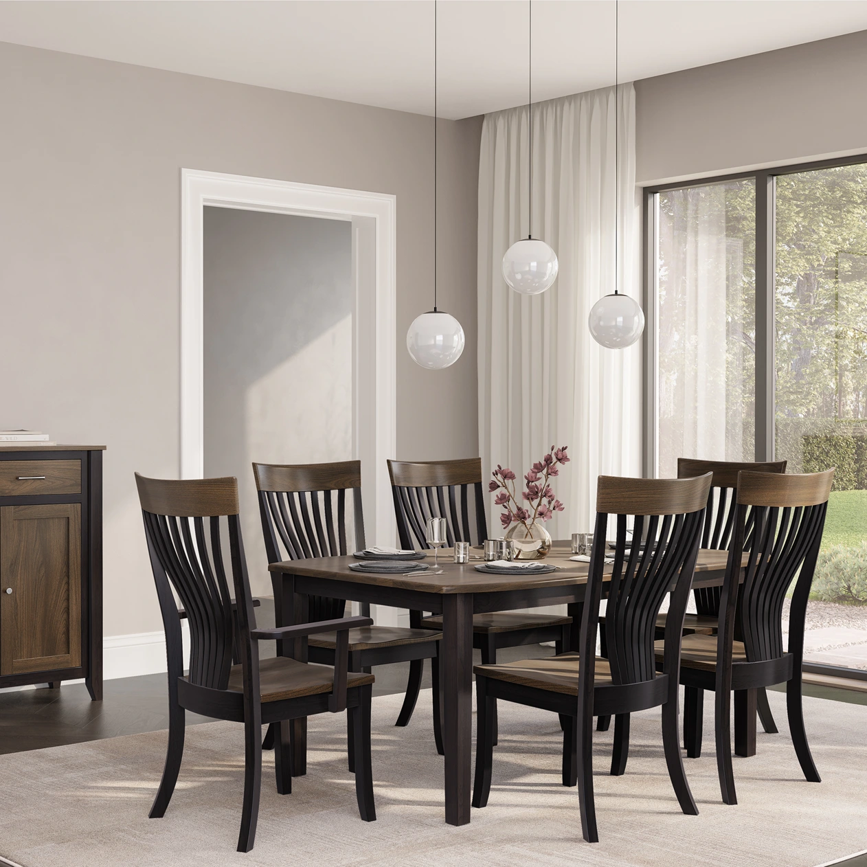 You will want to pull up a seat and stay awhile in these comfortably designed Brinkley dining room chairs finished in the stain of your choice. Upholstered seats add comfort and can be covered in your choice of fabric to add color and pattern. Both side and arm chairs styles are available and will complement the Boat table top supported by simple yet elegant Victor legs.